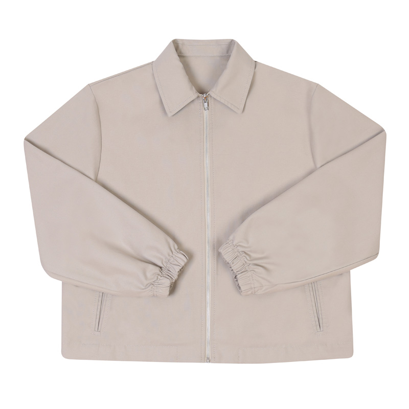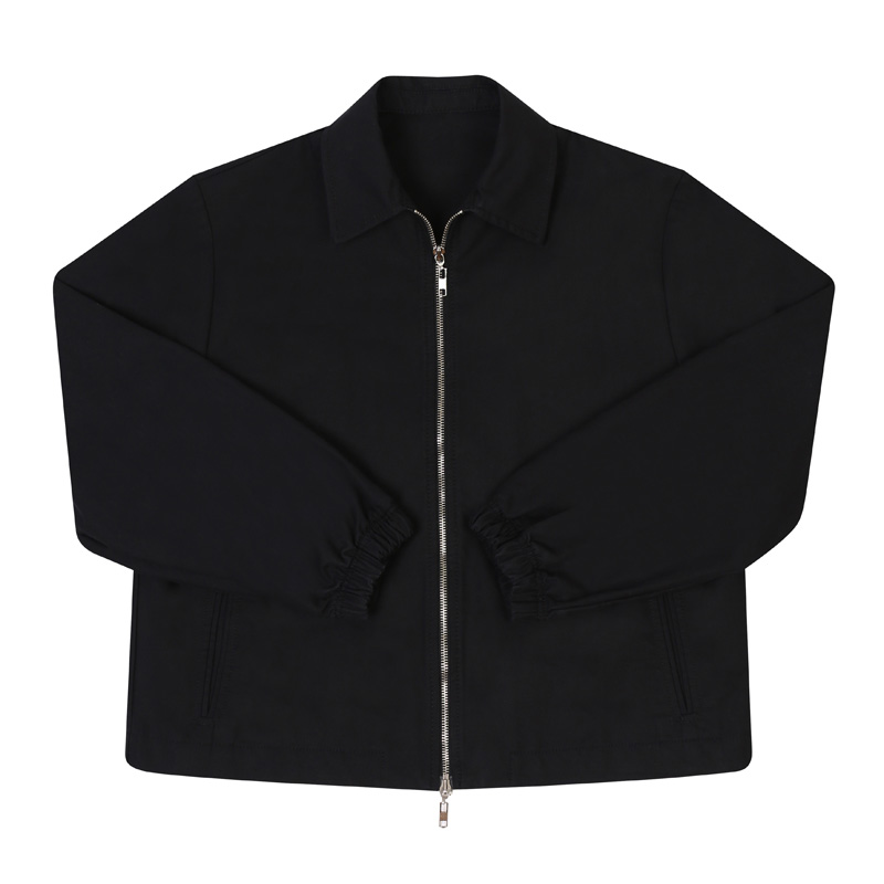 Cropped zip-up jacket with elastic hand cuffs