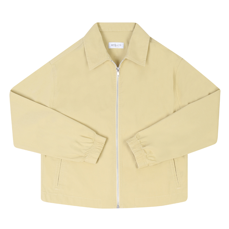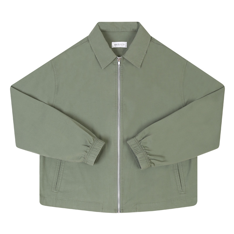 Cropped zip-up jacket with elastic hand cuffs and two front slash pockets