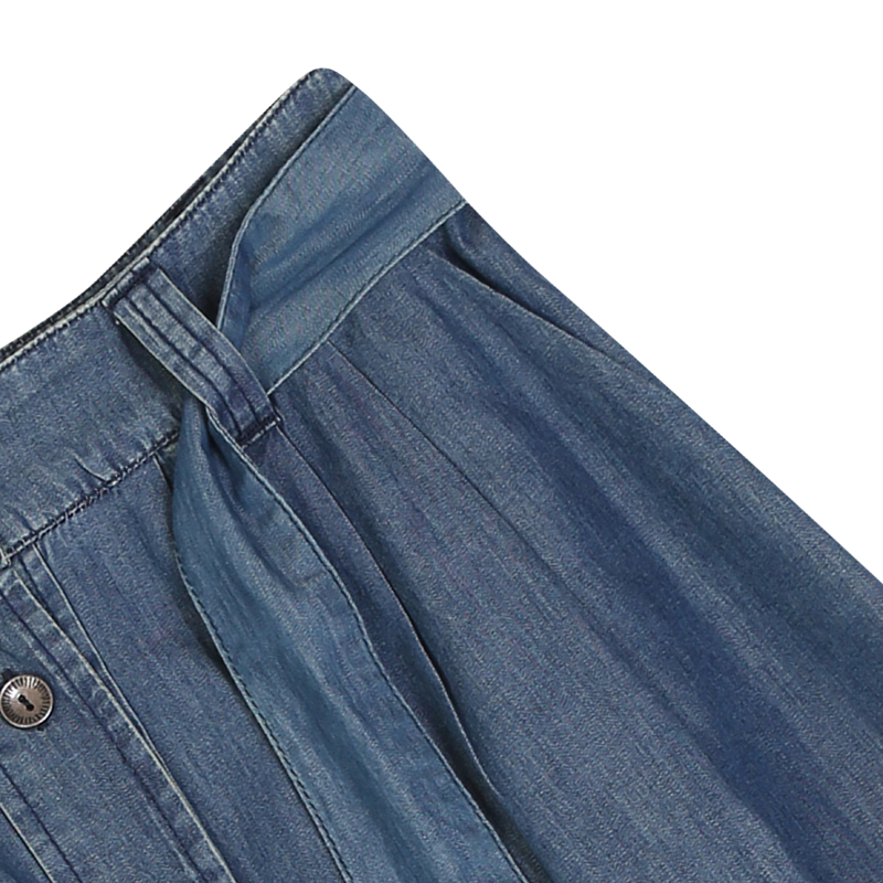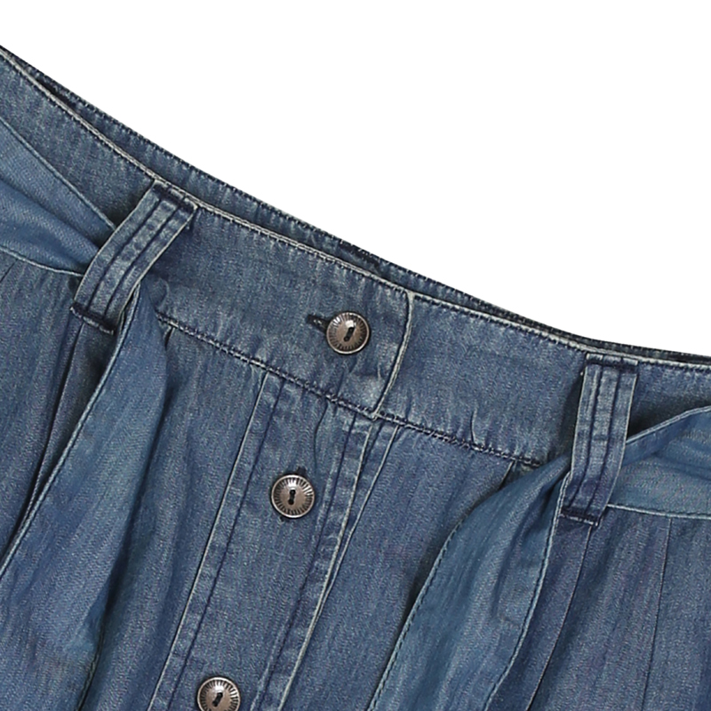 >Denim Buttoned Flared Skirt