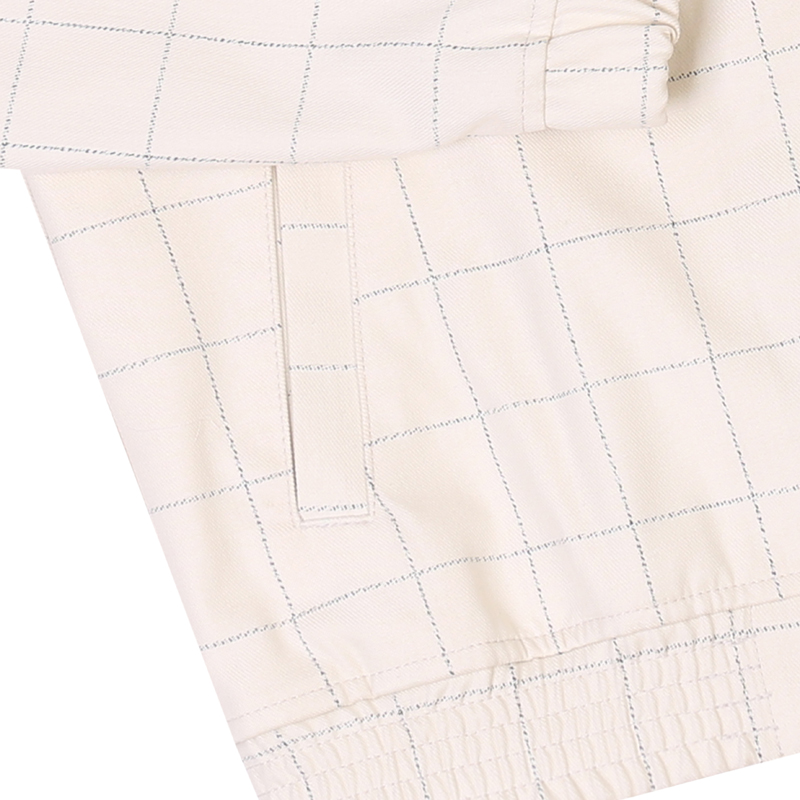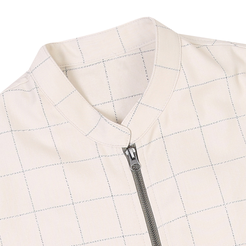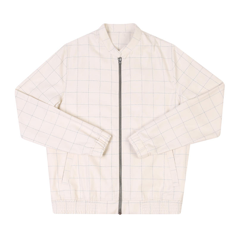Grid zip up jacket with two slash pockets and elastic cuffs and waistband