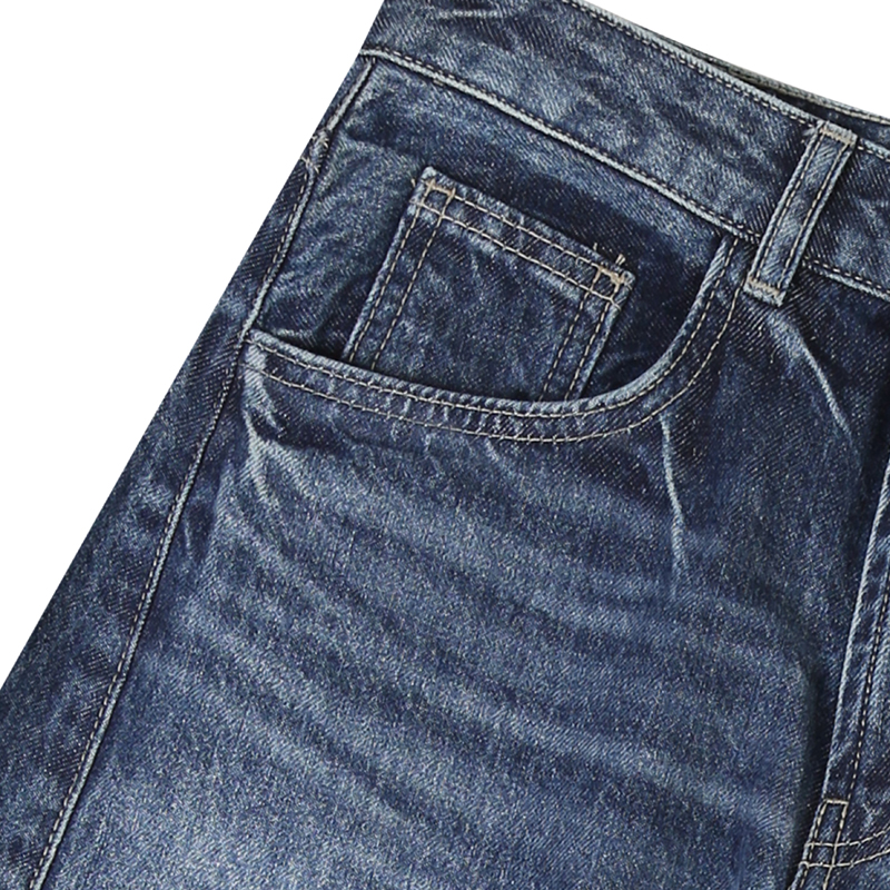 High-rise barrel leg denim designed with a front seam detail, cut in a large fit with five-pocket for a structured look. Hem 25cm