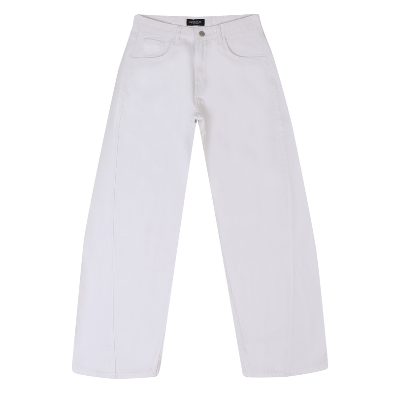 High-rise barrel leg pants designed with a front seam detail, cut in a large fit with five-pocket for a structured look. Hem 25cm
