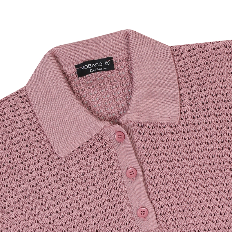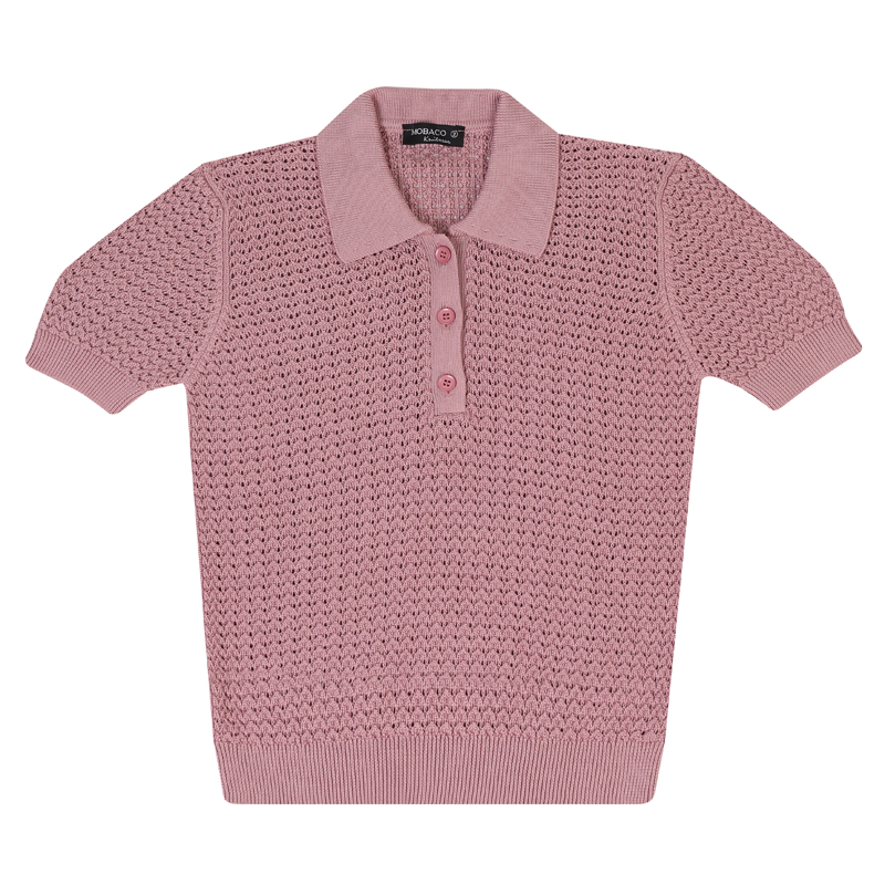Womens knitted polo shirt designed with a classic collar and short sleeves, crafted from soft breathable knit fabric for everyday comfort and easy styling.