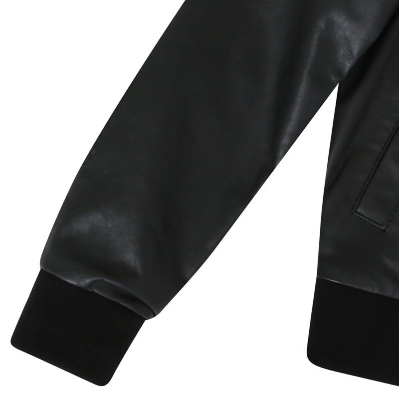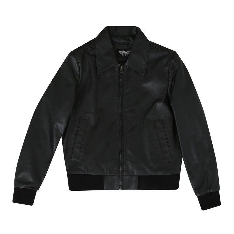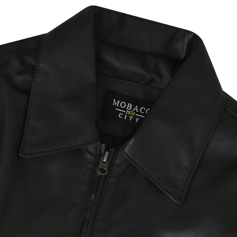 Leather zip-up jacket with two front slash pockets. Back length: 60 cm.