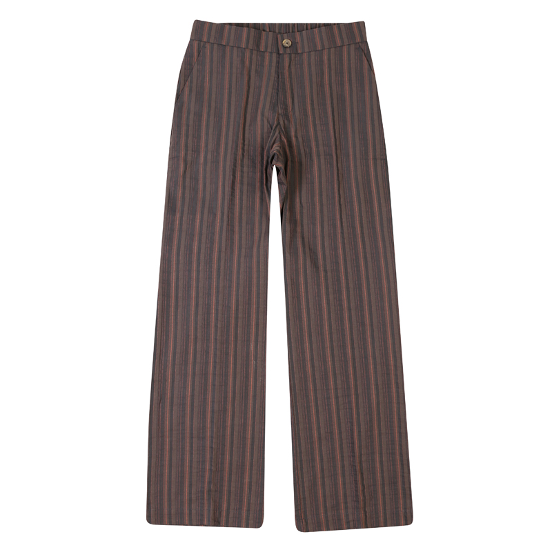 Striped Regular Fit, high waist pants. Zip fly and button closure – Two front side pockets – One bak pocket Hem: 25cm