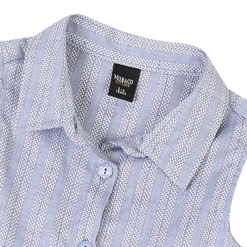 Sleeveless shirt dress, with a floral print and a drop waist