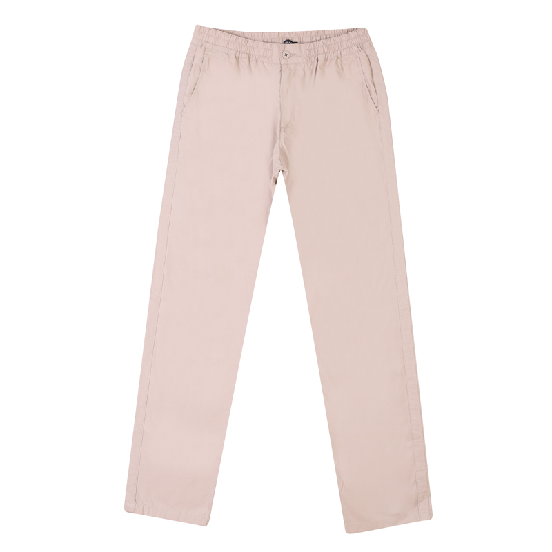 Slim Fit, Medium Waist, Poplin, Zip fly and button closure with interior drawstring , Two front side pockets, welt back pocket, Lightweight and breathable fabric