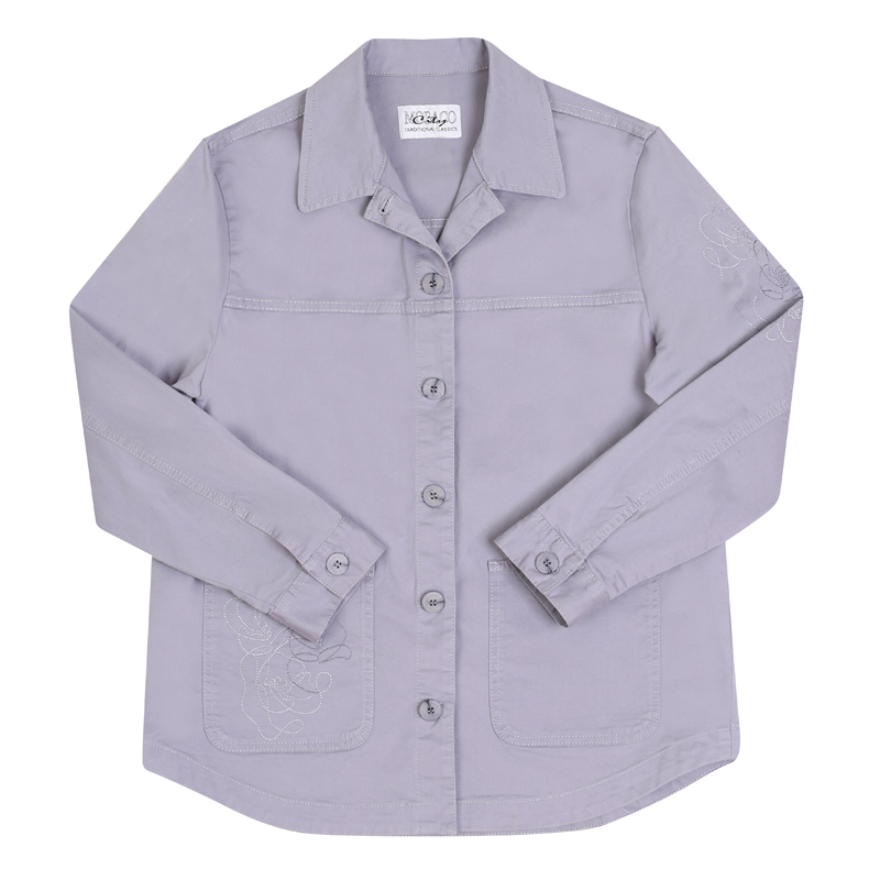Stretch twill jacket with embroideries on the sleeve and pocket