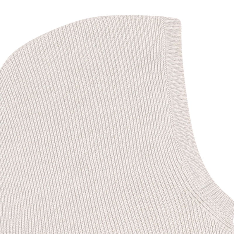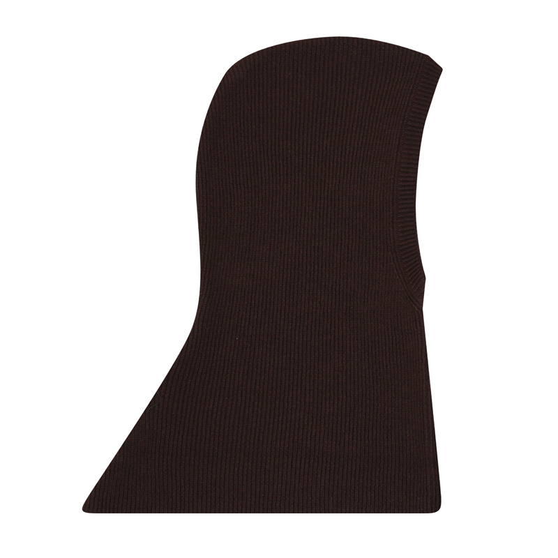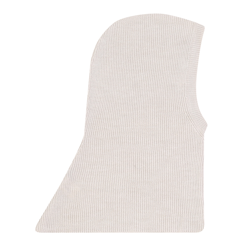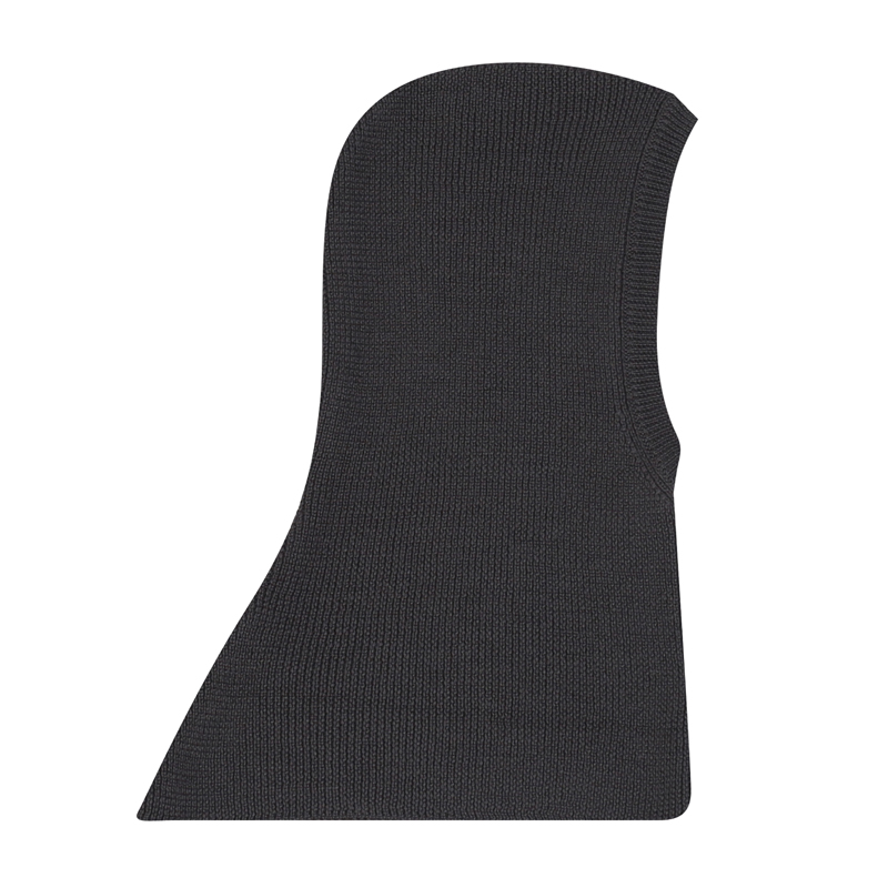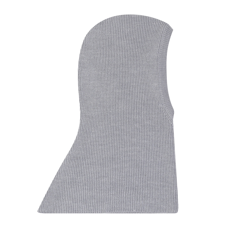 A soft wool ribbed balaclava, offering warmth and a snug fit for cold weather protection
