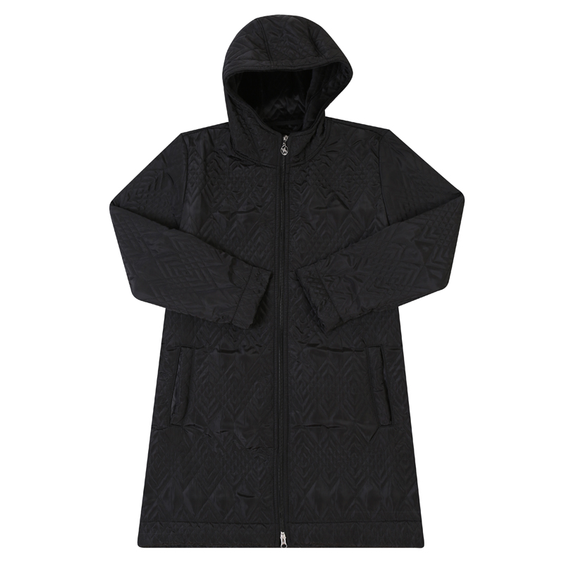 Zip- up quilted coat with a velour effect on the inside and two front pockets – back length: 88cm